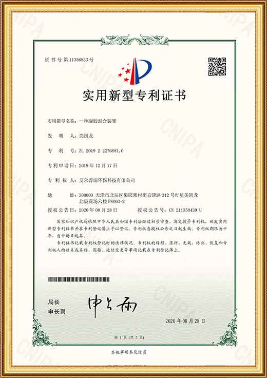 實用新型專利證書(一種凝膠混合裝置)